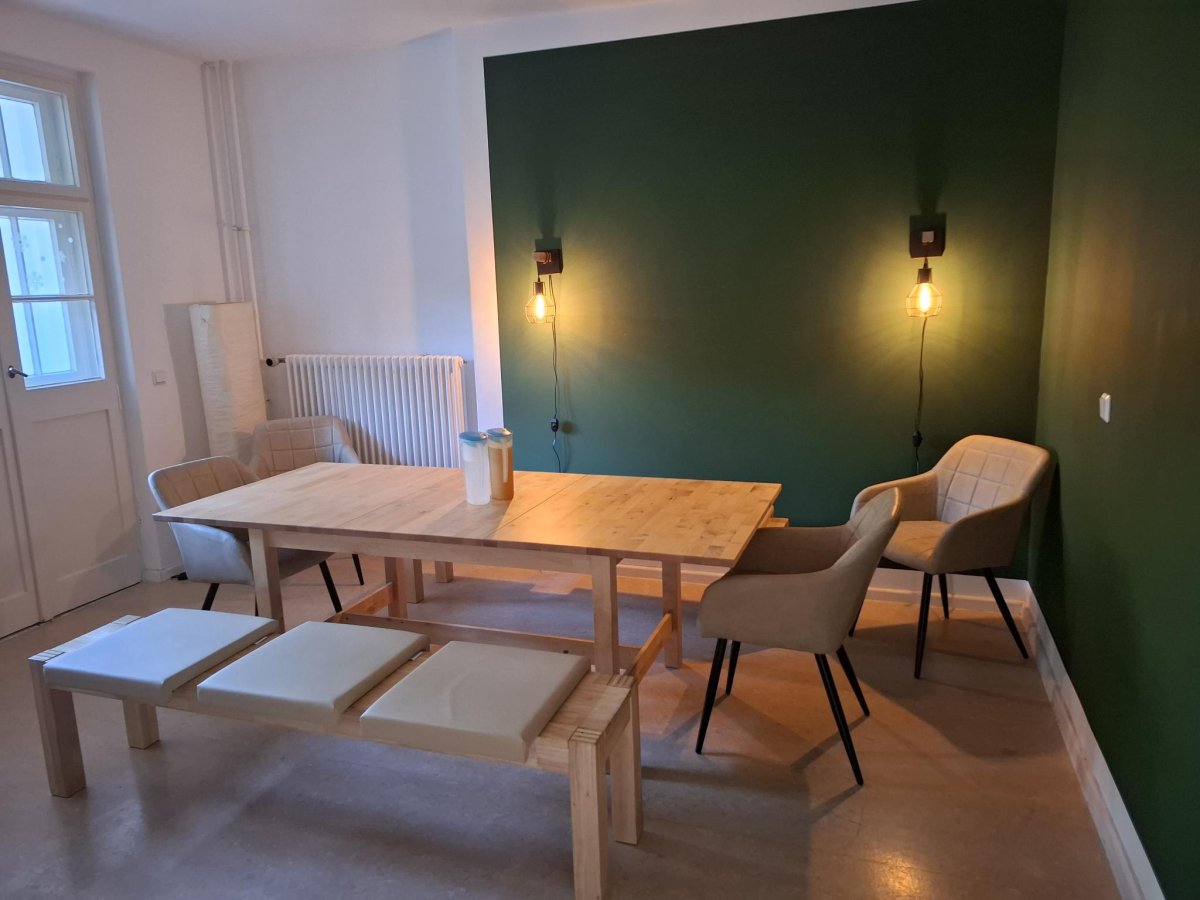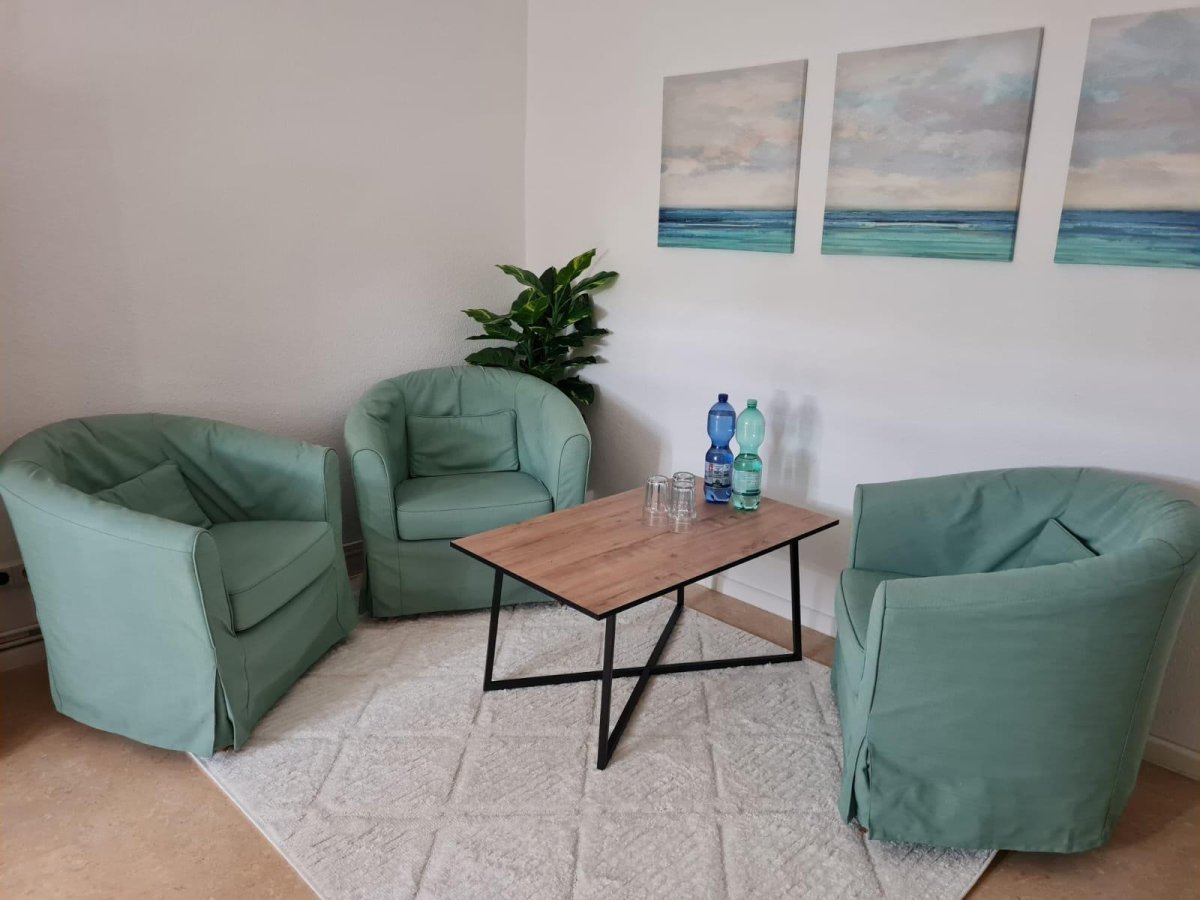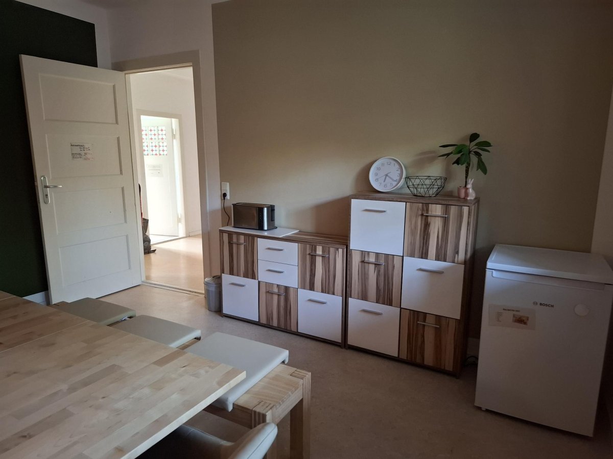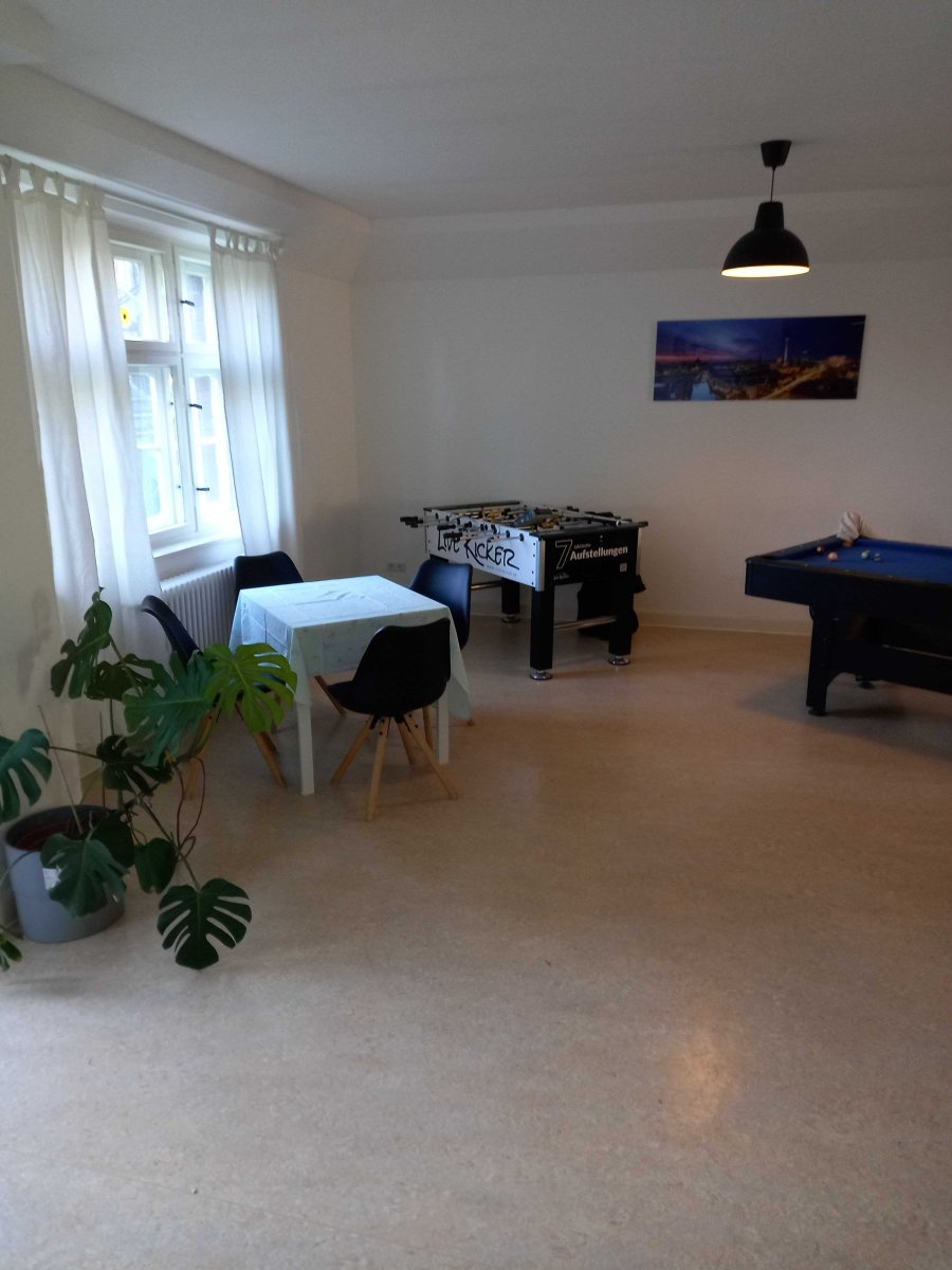 Für Kleingruppenarbeit besteht die Möglichkeit die Beschäftigungsangebote im Freizeitbereich mit Billardtisch, Kicker und diversen anderen Spielen, sowie den angegliederten kleinen Gartenbereich zu nutzen.