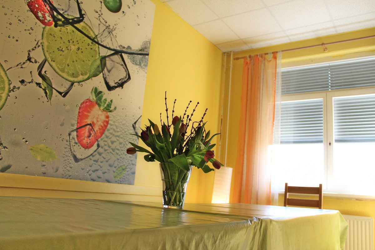 Das Wohnen in unserer Krisenunterkunft ist jugendgerecht und bietet ihnen Schutz. Die Jugendlichen bewohnen i.d.R. Einzelzimmer. Für Mädchen und Jungen stehen drei moderne Bäder mit WC und Dusche zur Verfügung. Das Angebot verfügt über Wohn-, Gruppen-, Medienräume sowie Büro und Beratungsräume. Des Weiteren besteht für Kleingruppenarbeit die Möglichkeit der Nutzung des Freizeitraumes (Tischtennis/Fitness/Musik etc.), des Lernraumes und des Gartens.